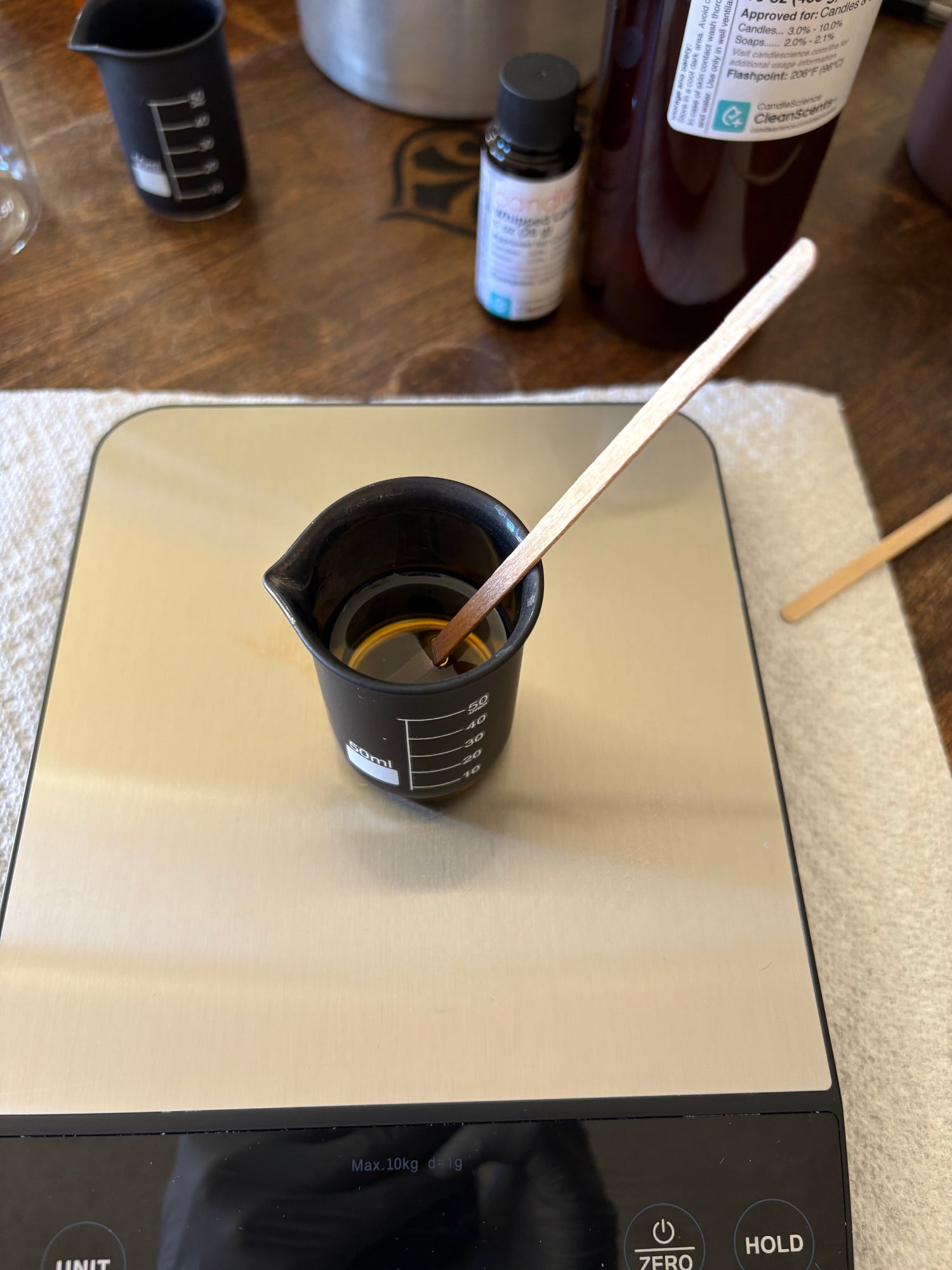 Every candle begins with carefully measured fragrance oils. Each scent is hand-mixed in small batches for consistency and quality.